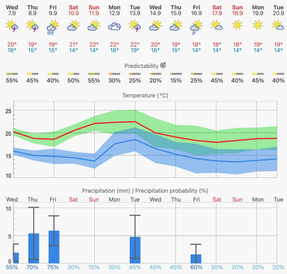 This month brought an update of the 14 days weather forecast with a new design and much faster loading speed. For those who want to print the meteogram, the "Download" button produces a nice png image which can be saved on your device.