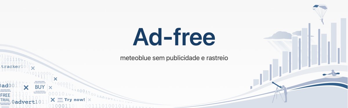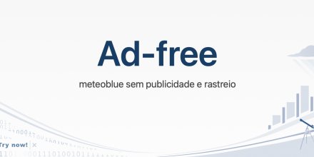 Hoje, lançamos meteoblue Ad-free, que lhe permite desfrutar do nosso site - sem publicidade e sem qualquer tipo de seguimento - com as excellentes previsões meteorológicas , visualizações de radar e satélite, mapas meteorológicos, meteogramas, webcams, e muitos outros dados meteorológicos.