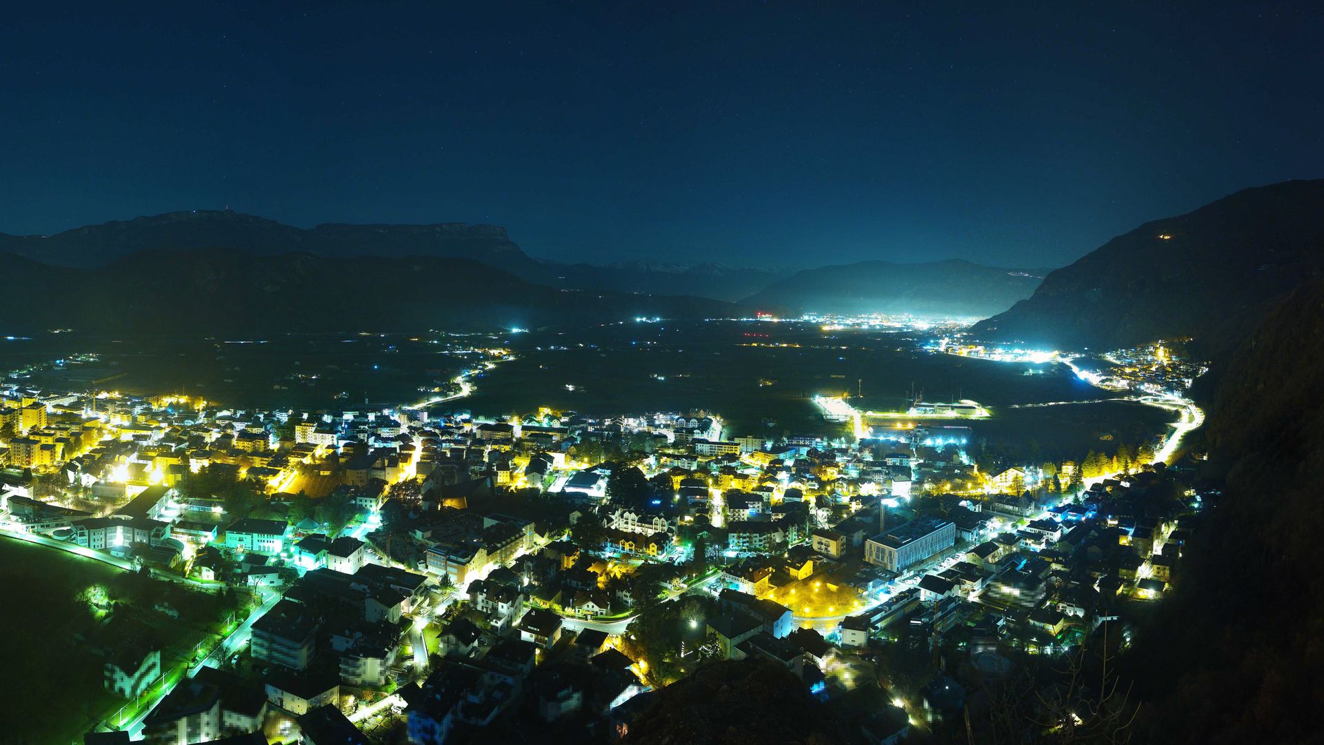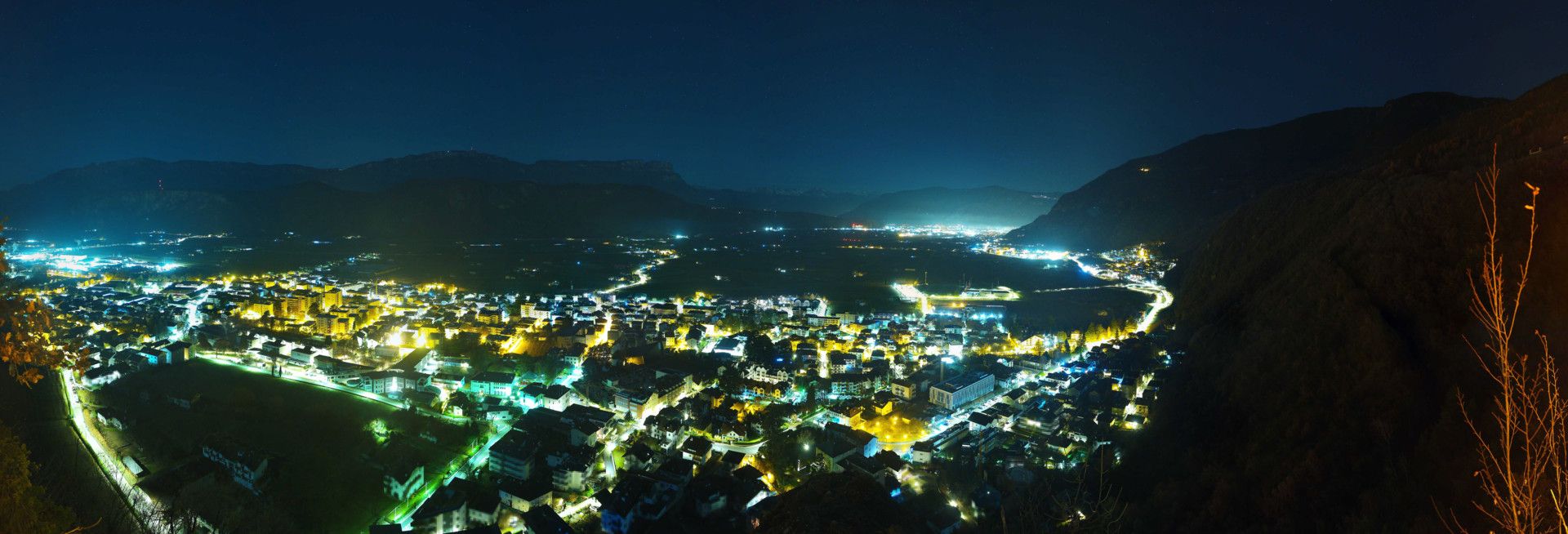 Eppan an der Weinstraße - Appiano sulla Strada del Vino: Blick von Eppan nach Bozen und auf die Dolomiten