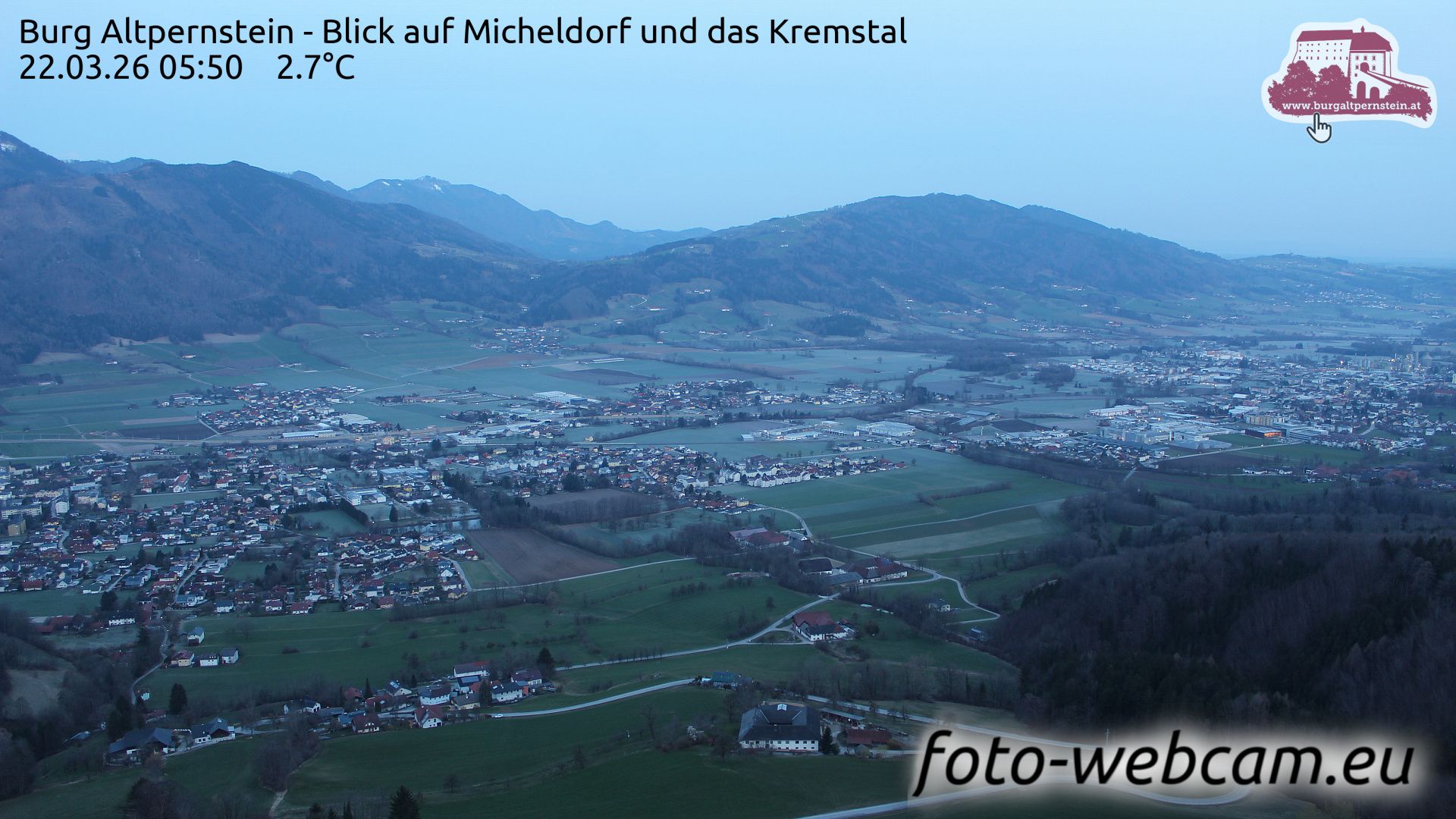 Micheldorf in Oberosterreich: Burg Altpernstein - Blick auf Micheldorf und das Kremstal