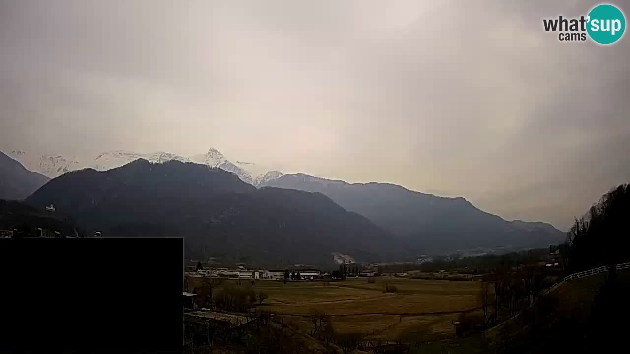 Svino: Webcam Kobarid - landing site for sailing paragliders in Kobarid with Ozben takeoff
